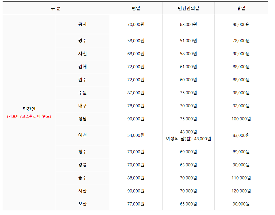 - 일반인: 일반인은 이용할 수 있지만, 군인보다 요금이 조금 더 비싸요.