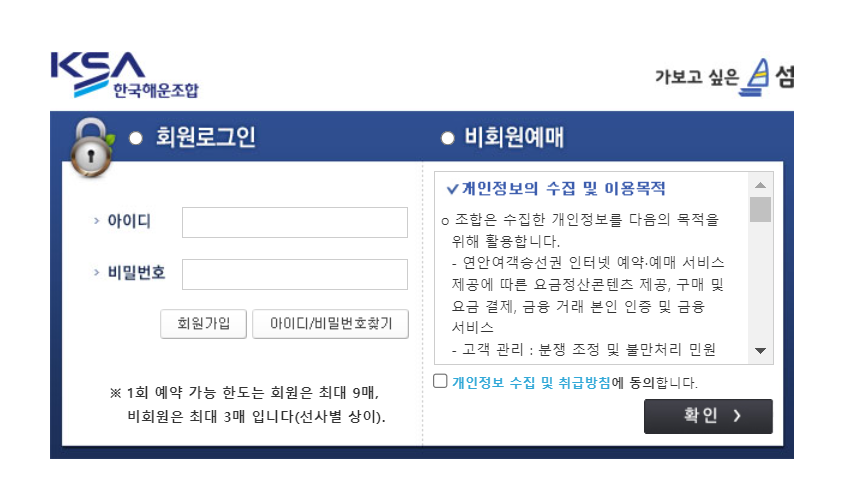 승선권을 인터넷으로 구매하고 싶은 경우 가보고 싶은 섬 홈페이지에서 회원가입 후 예약가능한데요. 예약 방법은 다음과 같습니다.