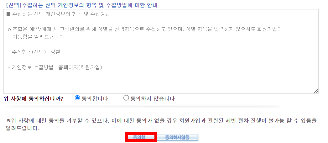 4. 약관에 모두 동의하신 후 동의함 버튼을 클릭하세요.