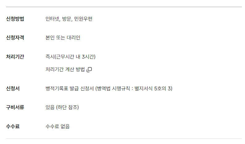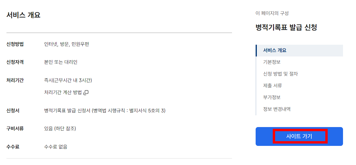 병적기록표 인터넷 발급하기